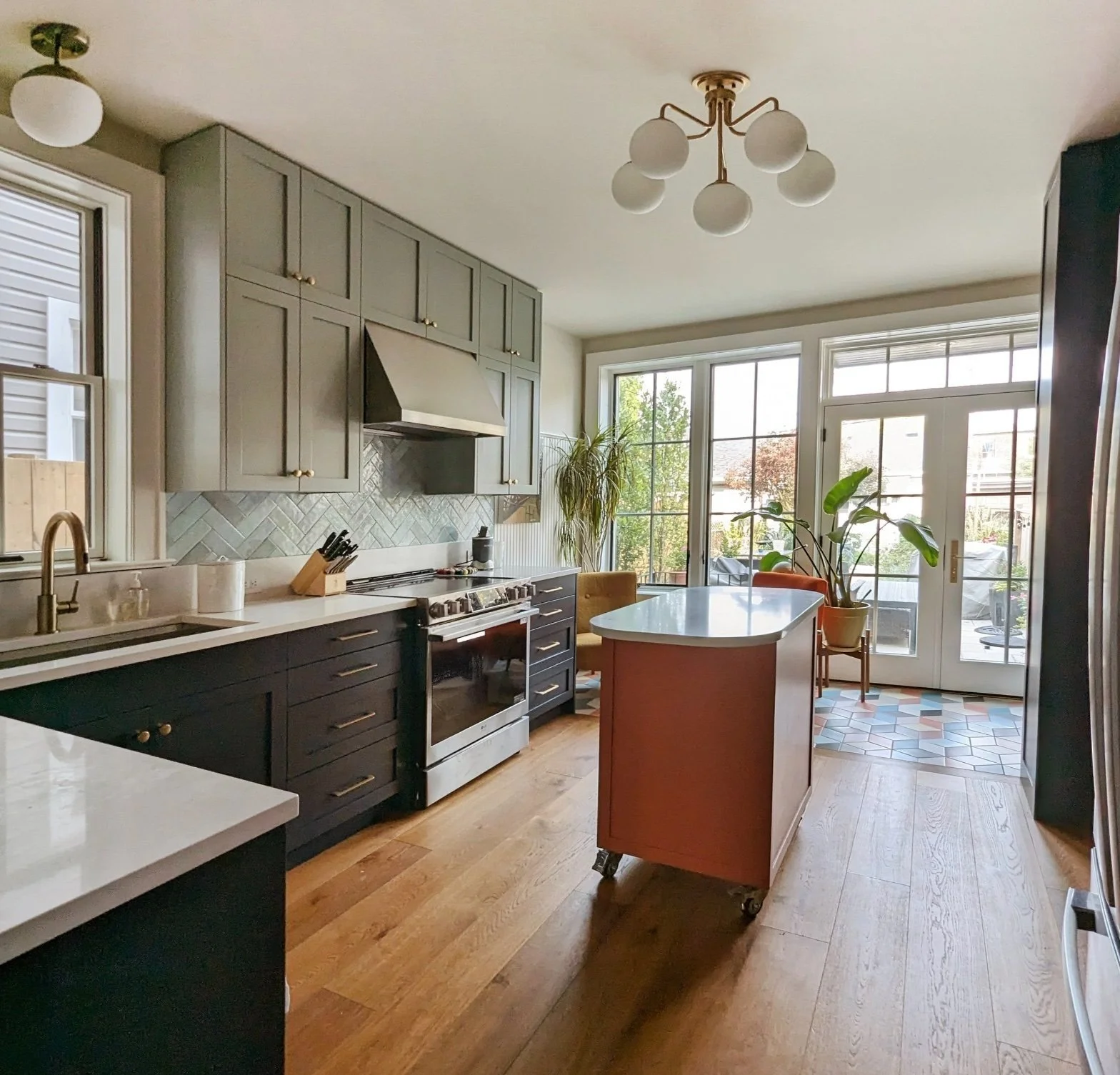 In large, common areas like kitchens and living rooms, it is often desirable to accommodate multiple activities in the same space so that a group of people can engage in an activity separate from someone else. This allows people to pursue their different interests while still enjoying the company of others.